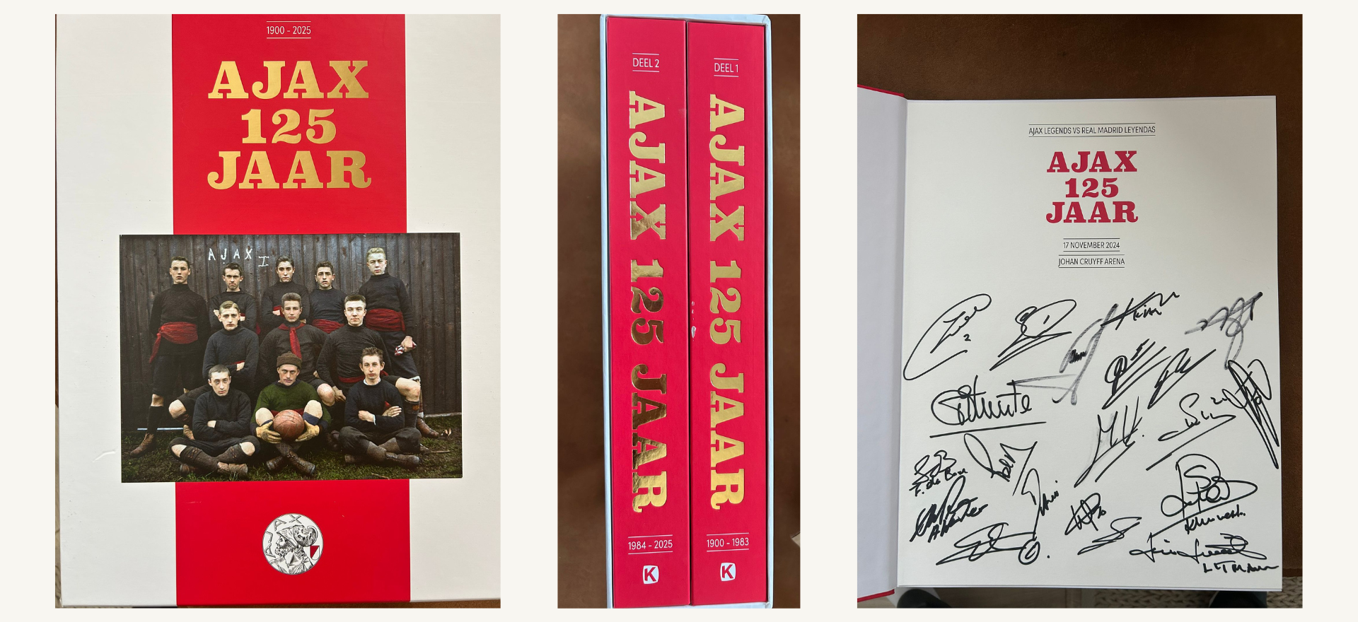 Het officiële jubileumboek 125 jaar Ajax, voorzien van handtekeningen van legend, zoals Van der Sar, Clarence Seedorf en Jari Litmanen. Ontdek een ongekende schat aan Ajax-historie met deze exclusieve, encyclopedische uitgave. Nooit eerder verscheen er een zo indrukwekkend en compleet naslagwerk over de club uit de hoofdstad. Met prachtige foto’s, unieke verhalen en memorabele momenten is dit gesigneerde exemplaar een waardevol aandenken en een must-have voor fans en verzamelaars van Ajax-memorabilia.